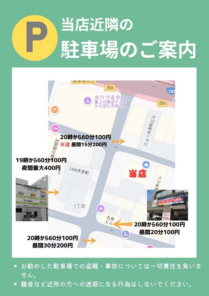 当店近隣の駐車場についてご案内します